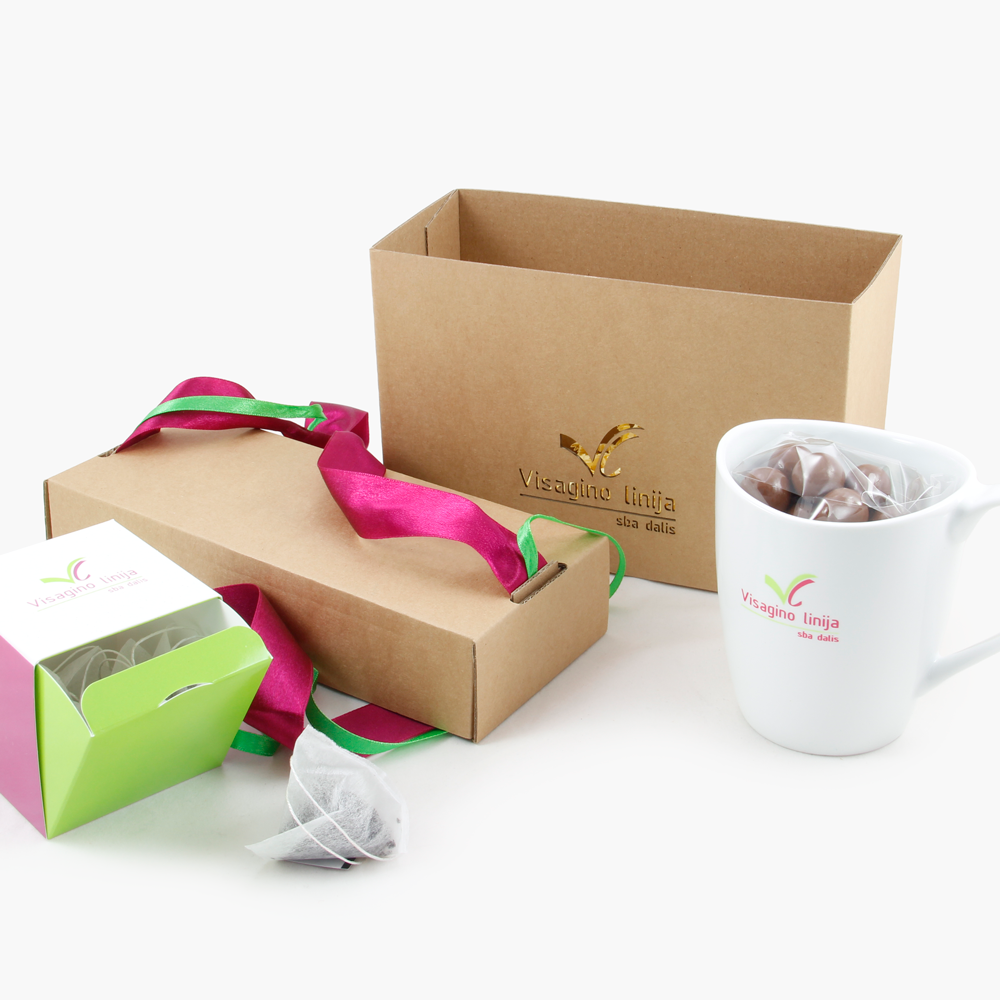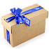 Brown capacious gift box from the corrugated cardboard. Decorated with ribbon and promotional stickers. The box is suitable for various sweets, chocolate ingot, collection and souvenirs. We will produce a ribbon with the print.