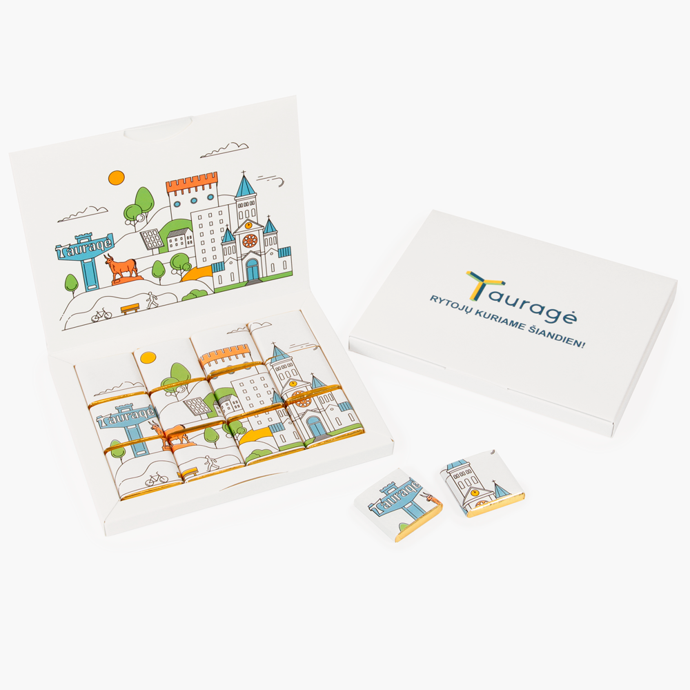 Personalized wrappers, your logo, and premium Lithuanian chocolate – everything you need for a memorable promotional business gift.