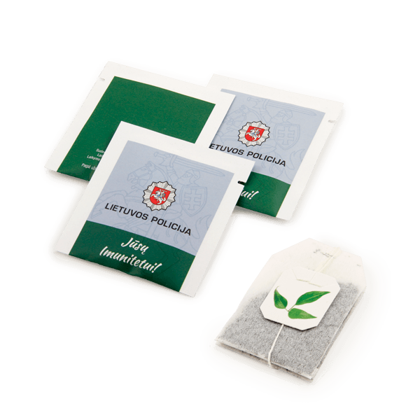 Nedidelė maloni varslo dovanėlė su arbtžolėmis. Natūraliai rūdos spalvos dėžutė su išraižytu logotipu arba balta dėžutė su atspaustu logotipu ir priderintos spalvos juostele.