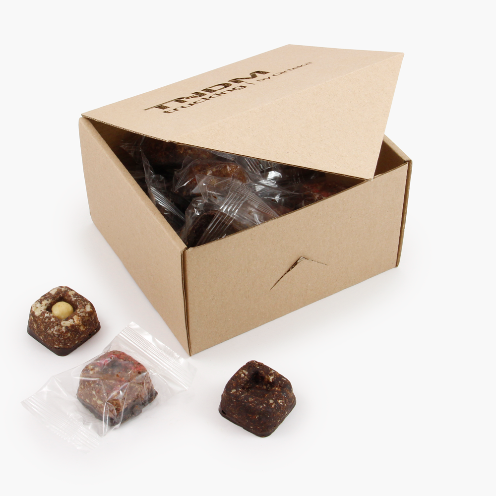 Saldainiai yra unikalūs tuo, kad vietoj šokolado yra pagaminti naudojant kerobo (CAROB) miltelius, kurie skirtingai nuo šokolado neturi sudėtyje cukraus ir kofeino. Kerobo (saldžiosios ceratonijos arba lietuviškai vadinamo saldžiavaisio pupmedžio) skonis primena kakavos, tačiau jis įdomesnis, šiek tiek kartesnis, karamelinis. Kerobas yra natūraliai labai saldus, tad gaminant su juo saldumynus nebereikia cukraus. Kerobas priešingai, nei kakava, neturi kofeino, todėl saldumynus vaikams rekomenduojama gamintu su kerobu! Saldumynai gaminami su kerobu labai gardūs, jie turi išskirtinį egzotišką skonį.