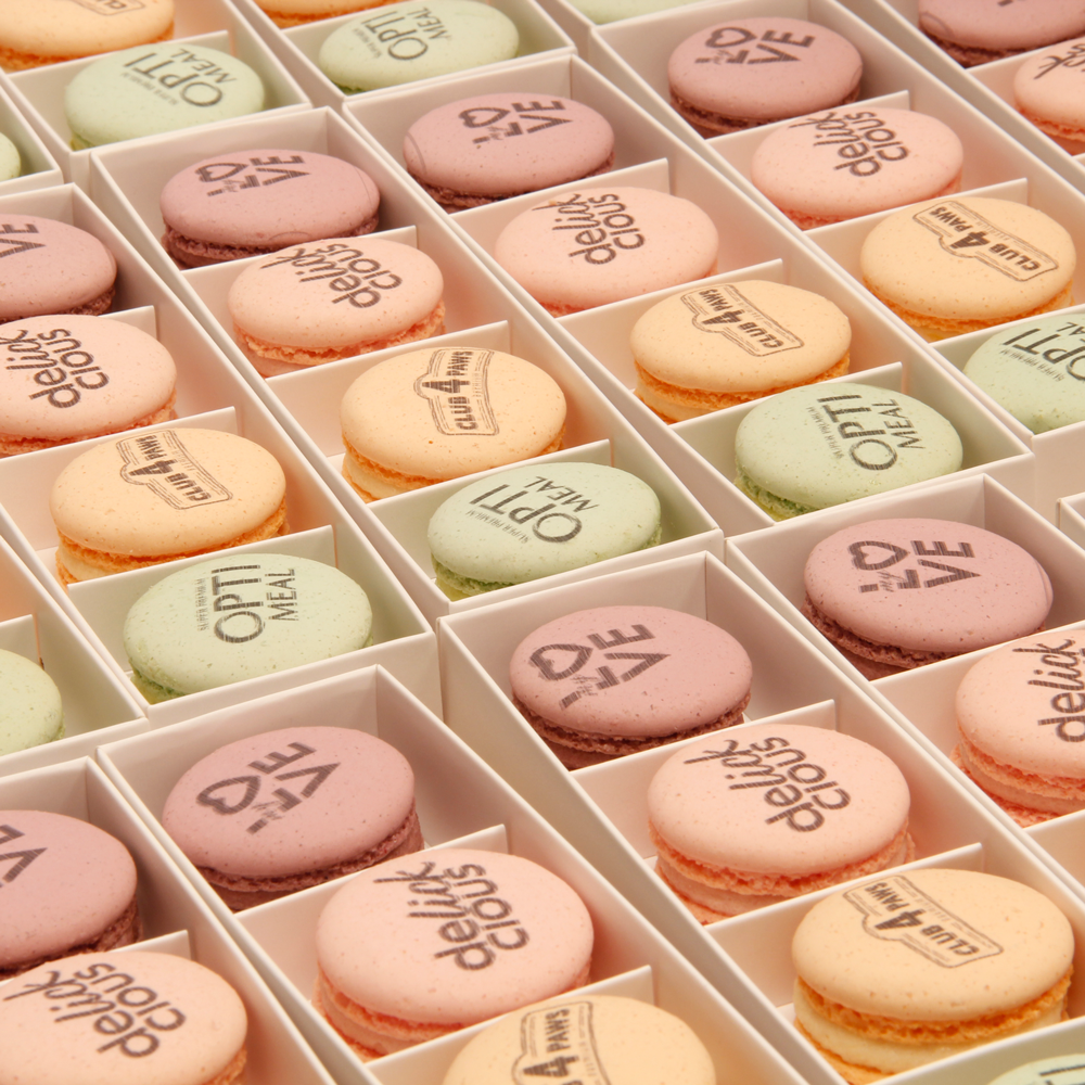 Jūsų logotipu papuošti makarunai (macarons) patrauks klientų ir pirkėjų dėmesį prezentacijose, konferencojose, įmonės šventėje. Ant makarunų galime atspausti tiek įmonės logotipą tiek spalvotą paveikslėlį.